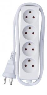 4-stikdåse m/jord hvid 1,5m 2x1mm2 230V 13A