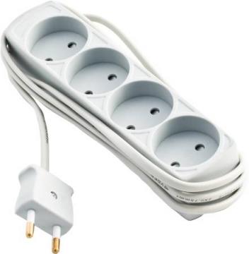 4-stikdåse uden jord med 1,5 meter ledning hvid