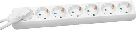 5-stikdåse schuko med jord og 5,0 meter ledning, hvid