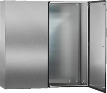 Rustfrit stål vægskabe. Forefindes i 23 forskellige størrelser. Skabene leveres inklusiv montageplade. Med standardopmærkning på montagepladen for hurtig montering af ledningskanaler og DIN-skinner. Med indvendigt hængslet låge. I bredder op til 800mm leveres skabene med en låge, og ved bredder over 800mm med to låger.