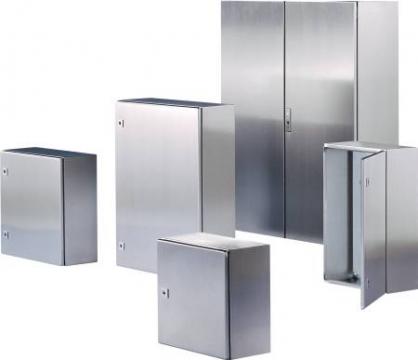 Rustfrit stål vægskabe. Forefindes i 23 forskellige størrelser. Skabene leveres inklusiv montageplade. Med standardopmærkning på montagepladen for hurtig montering af ledningskanaler og DIN-skinner. Med indvendigt hængslet låge. I bredder op til 800mm leveres skabene med en låge, og ved bredder over 800mm med to låger.