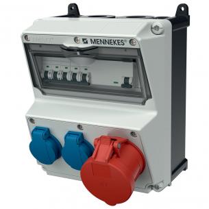 CEE-stikdåser1 CEE 32 A, 5 p, 400 V2 SCHUKO® 16 A, 230 VSikringer1 RCD 40 A, 4 p, 0,03 A1 MCB 32 A, 3 p, C2 MCB er 16 A, 1 p, CTilslutningi 1 kabel til 5 x 10 mm2Tilslutning og belastningsværdierFor-sikring maks. 40 AInA 36 ARDF 0,75Kabinetstørrelse260 x 225 mm (H x B)BeskyttelsestypeIP 44