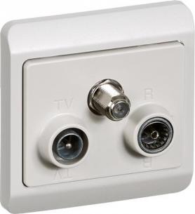 Forsynet med 2 IEC-nomerede udgange for R og TV og 1 stk. F-konnektor (hunbøsning) udgang for DATA. Enheden leveres komplet med dobbelt CLIC"LINE stikkontakt, kanaldåse, ramme og afgrener. Har indbygget R/TV filter, er HF-tæt og godkendt til fællesantenneanlæg.