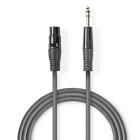 Nedis Balanceret Audio kabel | XLR 3-Pin Hun | 6.35 mm Hanstik | Nikkelplateret | 1.50 m | Runde | PVC | Mørkegrå | Kartonhylster
