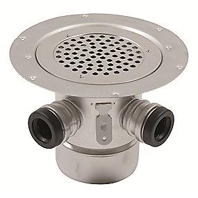 Blücher Circle gulvafløb med sideindløb og lodret Ø110 mm afløb. Til vinyl. Rustfrit stål