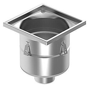 Blücher industrigulvafløb lodret Ø110 mm udløb. Til beton & fliser. Rustfrit stål