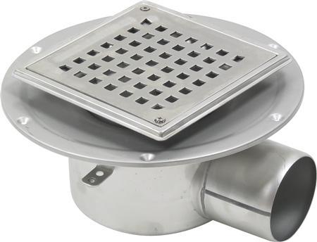 Justerbart boligafløb square- gulv: beton og fliser- smøremembran, ramme: 145x145mm- udløb: ø75mm, vandret- syrefast stål: AISI316l/EN1.4404