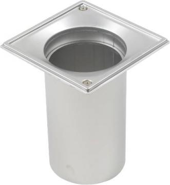 Overdel square, forlænget- med bærering til vandlås- gulv: beton og fliser- ramme: 145x145mm- syrefast stål: AISI316l/EN1.4404