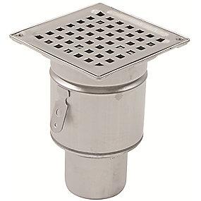 Blücher Square gulvafløb med lodret 75 mm udløb. Beton og fliser. Rustfrit stål