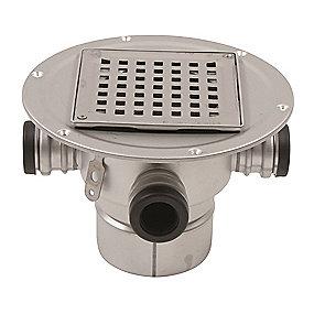 Blücher Square gulvafløb med lodret Ø110 mm afløb og 3 sideindløb samt smøremembran. Til beton & fliser. Rustfrit stål