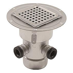 Blücher Square gulvafløb med lodret Ø110 mm afløb og sideindløb samt smøremembran. Til beton & fliser. Rustfrit stål