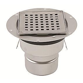 Justerbart boligafløb square- gulv: beton og fliser- klembanemembran, ramme: 145x145mm- udløb: ø110mm, lodret- rustfrit stål: AISI304/EN1.4301