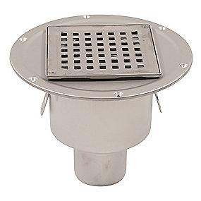 Blücher Square gulvafløb med lodret Ø75 mm afløb samt smøremembran. Til beton & fliser. Rustfrit stål
