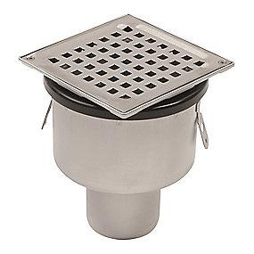 Blücher Square gulvafløb med lodret Ø75 mm afløb. Til beton & fliser. Rustfrit stål