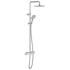 Termostatisk brusesystem med håndbruser og firkantet hovedbruser. Integreret omskifter i termostaten, der også har Anti-Skoldning og Eco-Save vandsparefunktion.