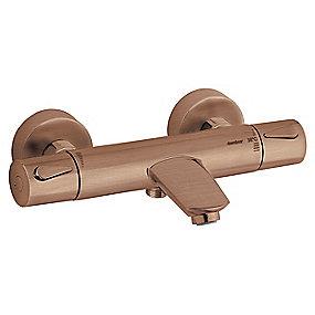 Silhouet Kar/brus termostat med 1/2" tilslutning. Inkl rosetter og excentrikker. Integret omskifter. Børstet kobber PVD
