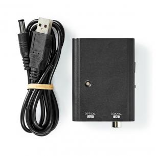 Tilslut en Blu-ray-afspiller eller spillekonsol til en modtager eller forstærker med denne digitale Nedis®-lydomformer. Den konverterer et digitalt RCA-lydsignal til et digitalt TosLink-lydsignal. Den leveres med et DC- til USB-opladerkabel (adapter medfølger ikke) til nem strømforsyning af den digitale lydomformer.