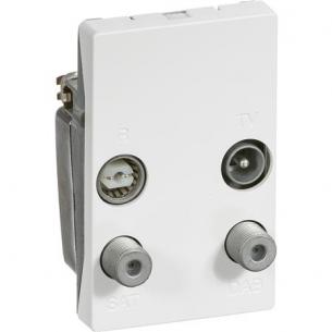 Antenneudtag til afslutning af antennekabel for TV, radio, Satelitmodtager samt DAB modtager Slutdåse anvendes til private enkeltanlæg for radio, TV, SAT og DAB, og som kun forsyner en bolig. Der anvendes kun et fælles nedføringskabel til både R, TV, SAT og DAB. F-konnektoren til DAB viderebringer 47-862 MHz, og kan udover DAB derfor også bruges til ekstra radio eller TV. Forsynet med 2 IEC-nomerede udgange for R,TV. Derudover 2 F-konnektorer (hunbøsning) udgang for SAT og DAB. Har indbygget R/TV filter, er HF-tæt og godkendt til fællesantenneanlæg. Udtagene har lav dæmpning og god filtervirkning. SAT hun-bøsningen har DC gennemgang, max. 350 mA. til satellitmodtagerens udendørsdel (bl. . LNB). IEC TV stikket har DC gennemgang på max 100mA. til bl.