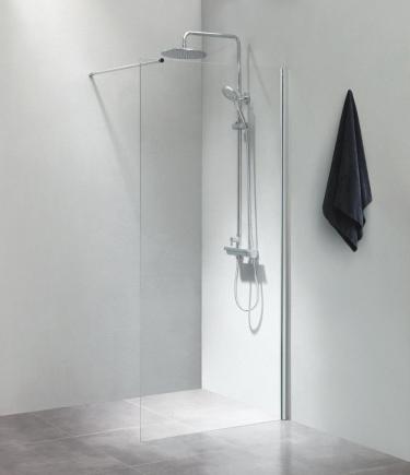 Dusch Fritstående brusevæg 80x200cm klart glas, med 100cm forhængsstang
