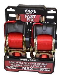 FastFix surring med automatisk returtræk af stroppen og smart stop, der forenkler lastsikring. Maks. 1500 kg belastning. Sæt med 2 stk.