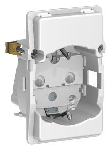 Anvendelse Stikkontakt for bolig installationer eller lignende Sikre overførsel af jord uden at anvende adaptere eller udskiftning af stikpropper. Den primære befæstelse i dåser og underlag sker via de medleverede klostykker Sekundært via skrue for teknisk monteringsramme i front af FUGA AIR dåser. Tertiært via skruetårnene i bunden af dåsen. Beregnet til planforsænket montage i FUGA dåser for indmuring, indstøbning, isætning forfra og blankmur, samt på FUGA BASELINE underlag med 14mm høj ramme (panelunderlag kræver 21mm høj ramme) og FUGA SOFTLINE 49mm underlag. Konstruktion Er konstrueret med pillesikring. Har dobbelte skrueløse klemmer for tilslutning med 1,5-2,5 mm² ledning. En leder pr. hul. PVC- og halogenfri. Overholder RoHS and ReaCH