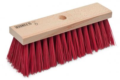 Kost med halvstive, røde nylonbørster. Gadekost med PVC børster, hvilket giver den stor slidstyrke. Fjerner effektivt skidt og snavs på fortovet, asfaltvejen, fliserne i haven osv. Træoverdelen er i ulakeret europæisk FSC certificeret bøgetræ. Passer til træskafter uden gevind.Kosten er 30 cm bred med 15 x 5 rækker børster.FSC® 100%FSC®-C147726