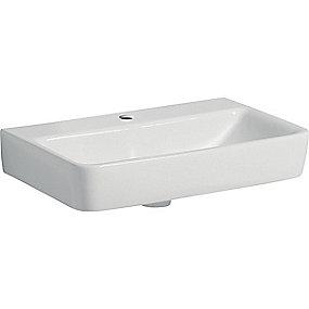 Geberit Renova Compact håndvask 60x37cm, Hanehul=Midtpå, Overløb=Uden, Hvid. Egnet til underskab. Egnet til montering i små badeværelser og på gæstetoiletter