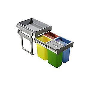 TANK40 affaldssystem, designet i tre forskellige varianter, med praktisk udtræksbakke øverst. Beregnet til montering i køkkenskab.Fås med beholdere i forskellige farver og størrelser, som gør det muligt at tilpasse sorteringen efter individuelt behov.