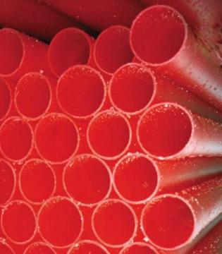 KABELRØR PEH 63/57 GLAT RØD M/MUFFE - 6 MTR. LÆNGDE