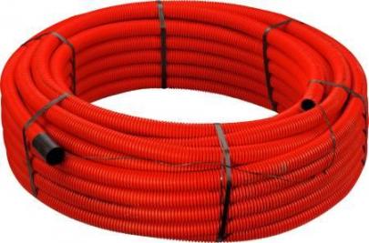 Kabelrør, Rød PE PEH 50/41 mm, dobbeltvægget med muffe og træktråd 50 meter
