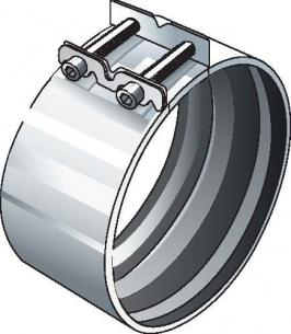 Kobling for støbejernsafløbsrør. Rustfri kappe. EPDM gummi indlæg. 2 skruer.