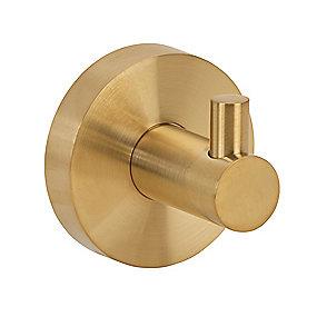 Kriss enkelt håndklædekrog med rund base, børstet messing/guld (PVD)