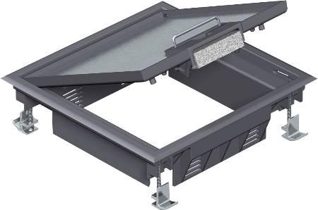 Til lågindsats GES4U, passer 2 stk. GB2 dåser. Dette gør at der sættes op til 6 moduler OBO Bettermann mosteringsmateriel. Den kan enten sættes i en indstøbningsboks med den rette montageplade eller sættes direkte i et hævet gulv. Gulvtykkelse 5mm.