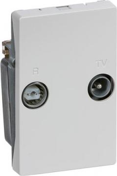 Forsynet med 2 IEC-nomerede udgange for R og TV. Har indbygget R/TV filter, er HF-tæt. Udtagene har lav dæmpning og god filtervirkning.