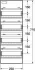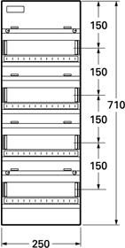 Er opbygget af bagplade, grundstel og dækkappe. Kan sammenbygges lodret og vandret. Komponentåbningerne er 216 mm og kan udvides med 2x9 mm. Bagpladen er forsynet med udslagsblanketter Ø40 mm mellem DIN-skinnerne og i top og bund. Leveres med en afgreningsklemme for beskyttelsesleder for 4 x Cu 16 mm 2 og 9 x Cu 6 mm 2 . Yderligere 1 afgreningsklemme kan monteres på grundpladen. Afstanden mellem DIN-skinnerne er 150 mm fra bagpladen til undersiden af DIN-skinne er der 23,5 mm.