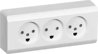 LK OPUS® 66 Tripel stikkontakt med 2 tændinger med jord, udvendig, hvid