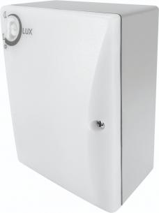 Elektronisk skumringsrelæ med kabelindføring nedad. Tænder og slukker på forud indstilt lysværdi (lux). 220-240V~ 50Hz.