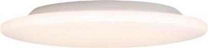 LED-plafond med lav indbygningshøjde i slank udførelse med et behageligt up-light, som udjævner kontrasten mod loft eller væg. Valgbar farvetemperatur via DIP-switch på 3000 K eller 4000 K. Installationsvenligt armatur i IP44 med lang levetid og høj lysstrøm, der leveres komplet med indbygget fasedæmpbar driver eller styring via mikrobølgesensor. Færdige skruehuller, der passer over loftsdåsen, to indgange i bunden, hvoraf den ene er centreret. Kabelgennemføringer til synlig kabeltrækning fra to sider.