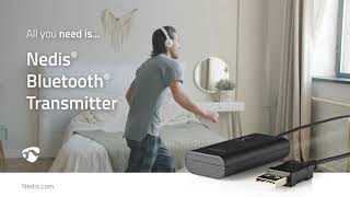 Overfør lyd med denne kompakte Nedis® trådløse Bluetooth®-sender. Den overfører uden problemer lyd trådløst fra dit tv eller dit kabelforbundne lydsystem til dine Bluetooth®-hovedtelefoner eller -højttalere.