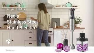 Den er hurtig og nem at bruge - og giver langt mindre opvask - end en blender på fod. Den er udstyret med aksel og kniv i rustfrit stål, og der er flere hastighedsindstillinger, så du kan blende selv de hårdeste grøntsager.
