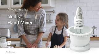 Nedis Håndmixer | 200 W | 5-hastighedsindstilling | Turbofunktion | Dreje skål / 2 dejkroge / 2 piskeris | Grå / Hvid