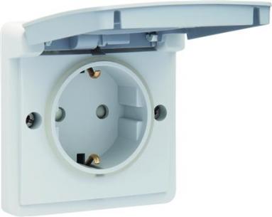 Hydro stænktæt stikkontakt, 16A/250Vac med sidejord, plug-in-klemmer og pillesikring. Kapslingsklasse IP44. Slagfast og gennemfarvet. Fås i farverne grå, hvid eller sort. Underlag eller indmuringsdåse bestilles separat.