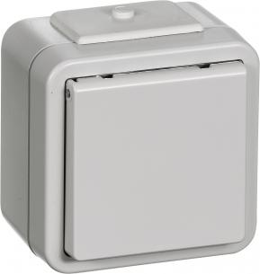 Opus® 73 Stikkontakt 2-pol m/jord IP44 med underlag lysegrå