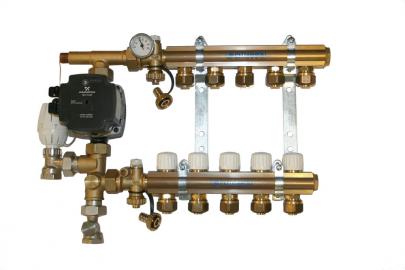 Komplet gulvvarmesystem 12 kredse. Incl. UPM3 15/70 pumpe, 3/4" fordelerrør, u/forindstilling og 20 mm PEX fittings.