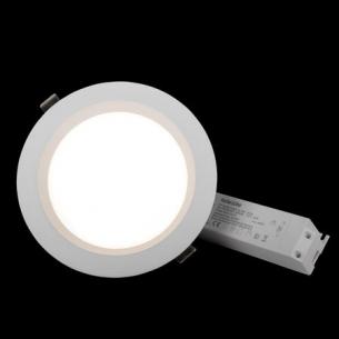 Energieffektiv downlight med lav indbygningshøjde til almen belysning i større lokaler - perfekt erstatning for ældre armaturer med kompaktlysstofrør. Farvetemperaturen vælges via DIP-switch. Findes i tre størrelser, som passer til de fleste hulboringer fra 140 til 218 mm. Med høj effektivitet og bred spredevinkel sammen med en opal blændbeskyttelse skabes et jævnt generelt lys i for eksempel korridorer, skoler, spisestuer og venteværelser. Leveres komplet med fasedæmpbar driver, 2m tilslutningskabel med stik uden jord.
