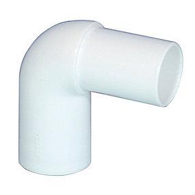 Hvid Purus 90° bøjning med spidsende til indstik.Til afløb fra håndvask, bad, vaskemaskine m.m.