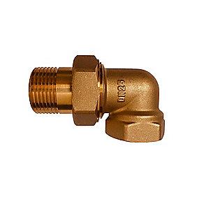 Vinkelløbende radiatorforskruning muffe/nippel. Metallisk tætning. Rå messing. I henhold til DIN 3842