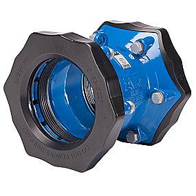 AVK SupaMaxi DN80 trækfast universalkobling. Til gråjerns-, duktiljerns-, PE-, uPVC- og stålrør max. PN 16, og rustfrie stål- og asbestcementrør max. PN 10. Drikkevandsgodkendt EPDM pakning