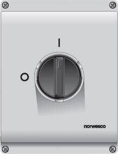Sikkerhedsafbryder 63A, 3 polet+N+H+PE, aflåslig afbryder på front, 4xM32 + 2xM16, IP65, AC23A 500V, 30kW motoreffekt ved 400VAC.