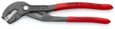 Drejelige, universelle gribeindsatser for et sikkert betjening af spændebåndene i enhver position. Gribeindsatser, som kan drejes også ved belastning. En ekstremt høj udveksling betyder, at spændebåndet med bøjler kan åbnes sikkert og nemt. Slankt og lavt hoved og drejelige gribeindsatser giver et ideelt værktøj - især ved trange pladsforhold. Ekstrafunktion: Slanger løsnes forsigtigt med fortandet gribegab. Krom-Vanadium-elektrostål, smedet og oliehærdet. Anvendes til standard spændebånd, pladsbesparende spændebånd og trådspændebånd samt fjederbåndsringe op til 50 mm nominel størrelse. Maksimal mundåbning 50 mm- mere end 30 mm spændvidde.